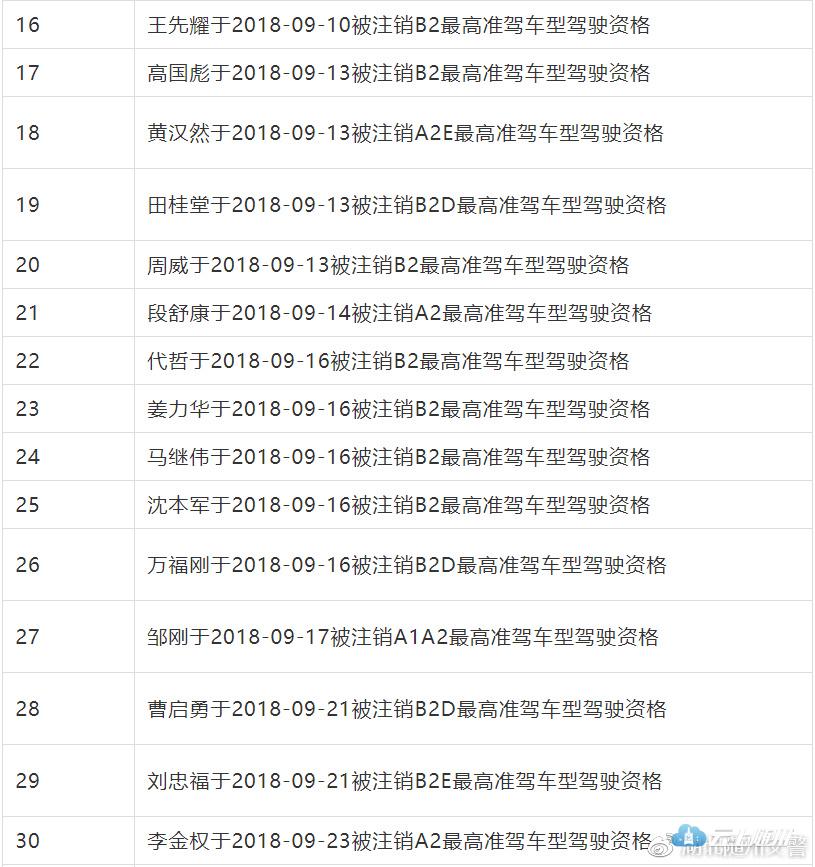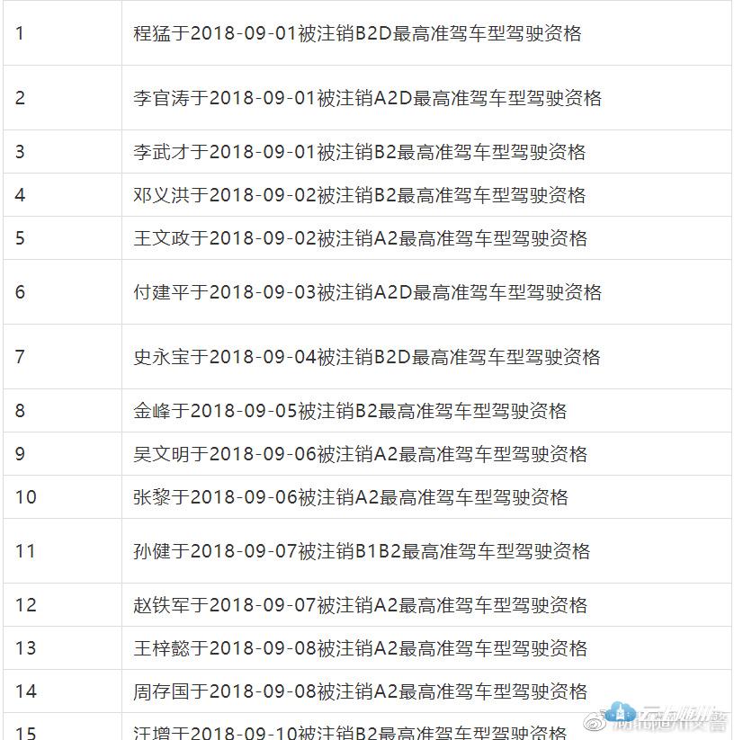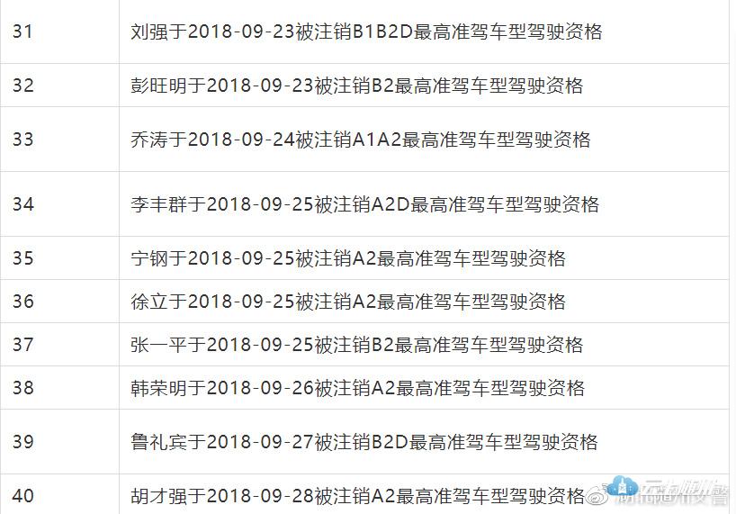 依据《中华人民共和国道路交通安全法》和《机动车驾驶证申领和使用规定》的相关规定:对B1、B2、B2D、A1、A2、A2D准驾车型一个记分周期记满12分的驾驶员注销其最高准驾车型驾驶资格进行公示公告。