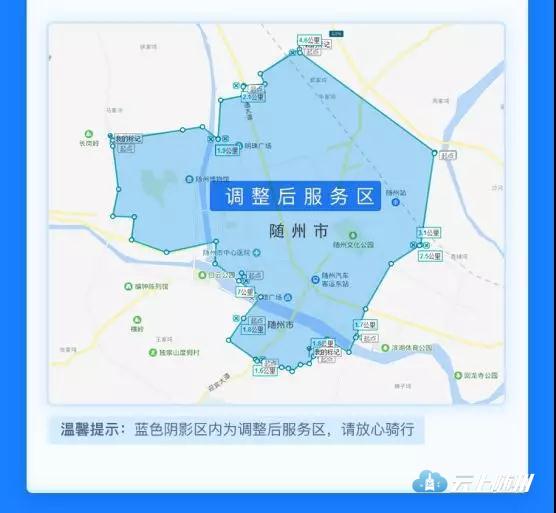 为了给市民提供更优质的共享出行服务,近日,哈啰出行公司发布了关于调整随州服务区的公告,随州新服务区范围:北到五丰中学,孔家坡北巷,南到随州市政府,东到编钟大道沿线直至随州站,西到随州一中,曾都区第一高中。
