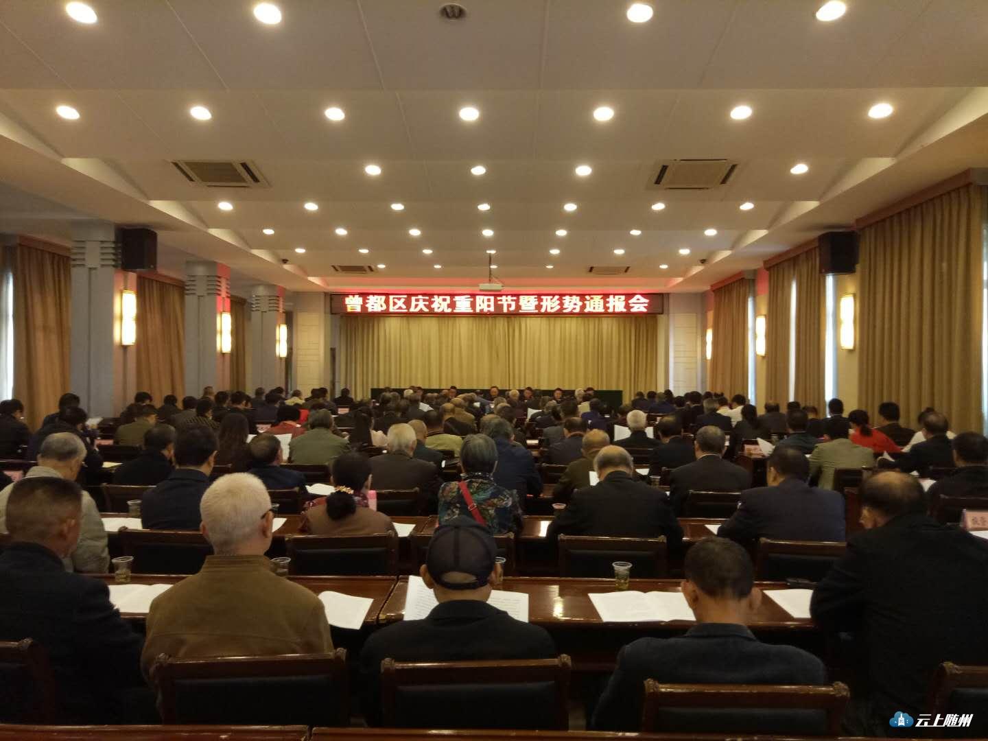 10月17日,曾都区召开庆祝重阳节暨形势通报会,向全区老干部送去节日的祝福,通报今年以来全区经济社会发展情况。区委书记何运平,区领导吴家明、黄家洲、邱立平、刘飞、王晓义、张杰和老干部一起共度佳节,共叙情谊,共商发展。、