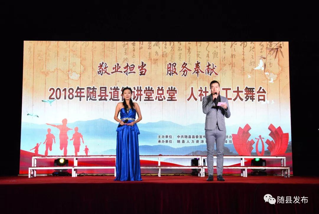 10月15日晚,由中共随县县委宣传部、随县文明办主办,县人社局承办的“敬业担当·服务奉献”2018年“随县道德讲堂总堂·人社职工大舞台”活动在随县人社局门前广场举行。