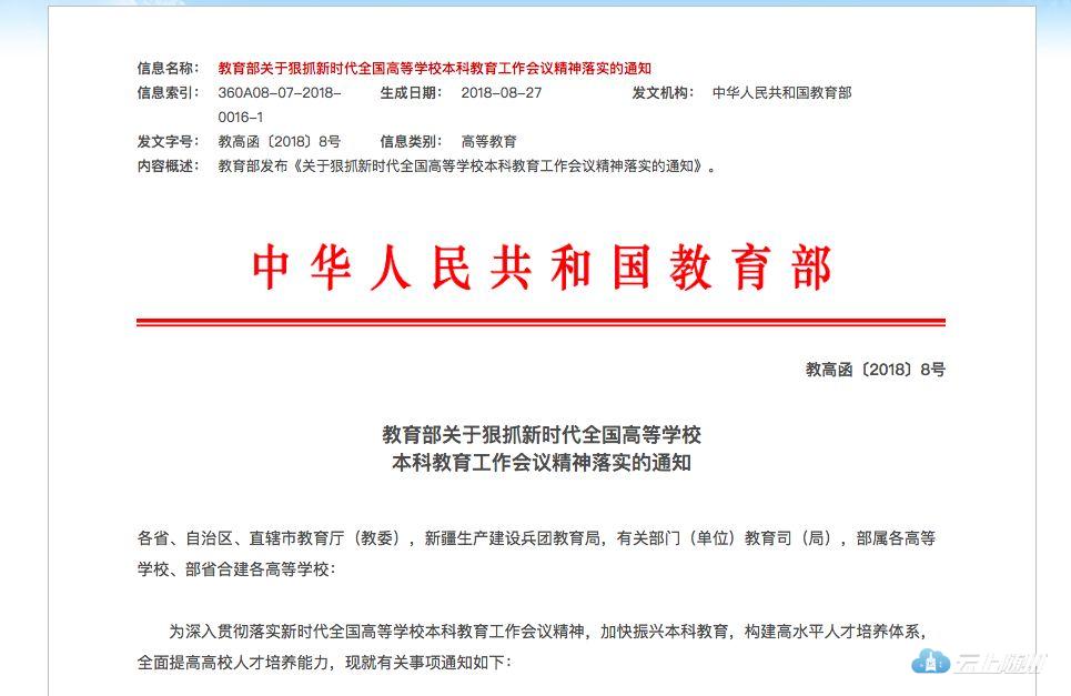 2018年9月6日,教育部发布《关于狠抓新时代全国高等学校本科教育工作会议精神落实的通知》,要求加强学习过程考核,加大过程考核成绩在课程总成绩中的比重,严格考试纪律、严把毕业出口关,取消“清考”、严进严出。重塑考试权威地位,改变大学本科阶段“严进宽出”的弊病。学生补考不过即失去学位。