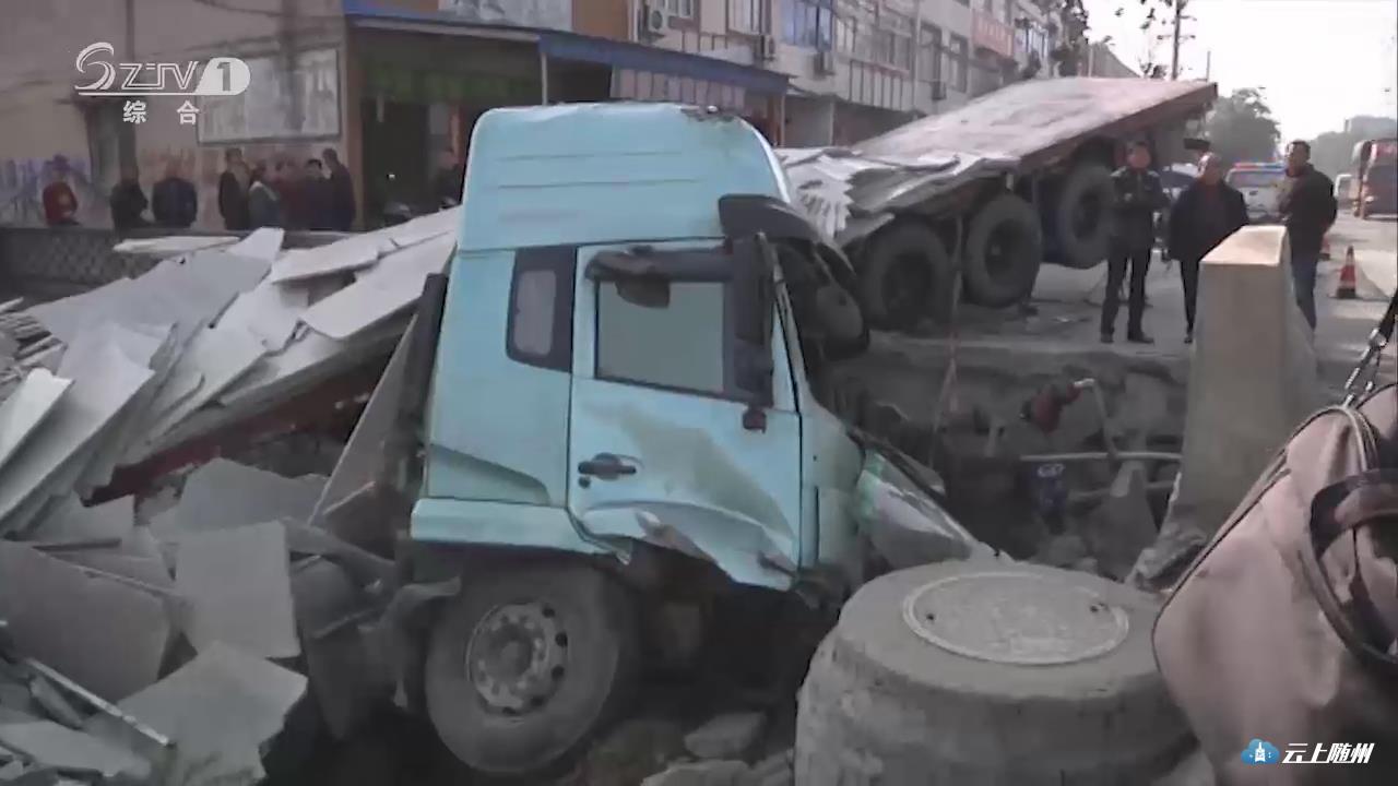 记者在现场看到,这辆大货车为浙江牌照,从随岳高速高城连接线驶入G240国道时发生侧翻,掉到小桥下,车身上的石材全部掉落,驾驶室在桥下扭过头来,玻璃已全部破碎。