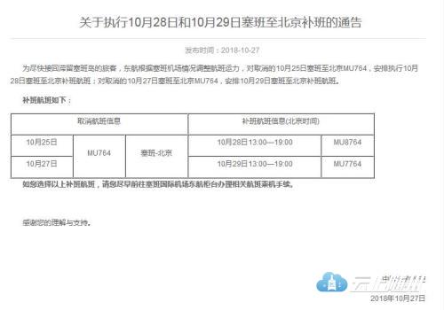 东航取消10月27日北京至塞班,10月30日至11月14日塞班至北京往返航班。对10月27日塞班至北京MU764航班做顺延,推迟至机场符合飞行安全标准后执行。东航将根据当地机场恢复情况,动态调整航班运行计划,安全运输滞留旅客。