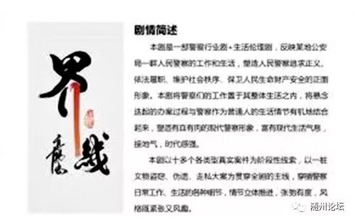 连续剧《界线》是一部警察行业剧+生活伦理剧,反映某地公安局群人民警察的工作和生活, 塑造人民警察追求正义、依法履职、维护社会秩序、保卫人民生命财产安全的正面形象。
