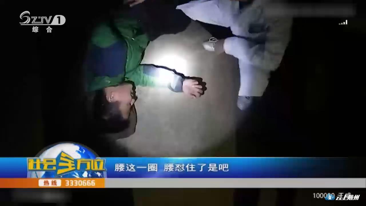 【同期声】腰这一圈,腰怼住了是吧,胸口这边怎么样?颈部怎么样?没事,头怎么样?没事是吧,腰以下有问题是吧?知觉有没有?知觉有,左脚肯定是骨折了。
