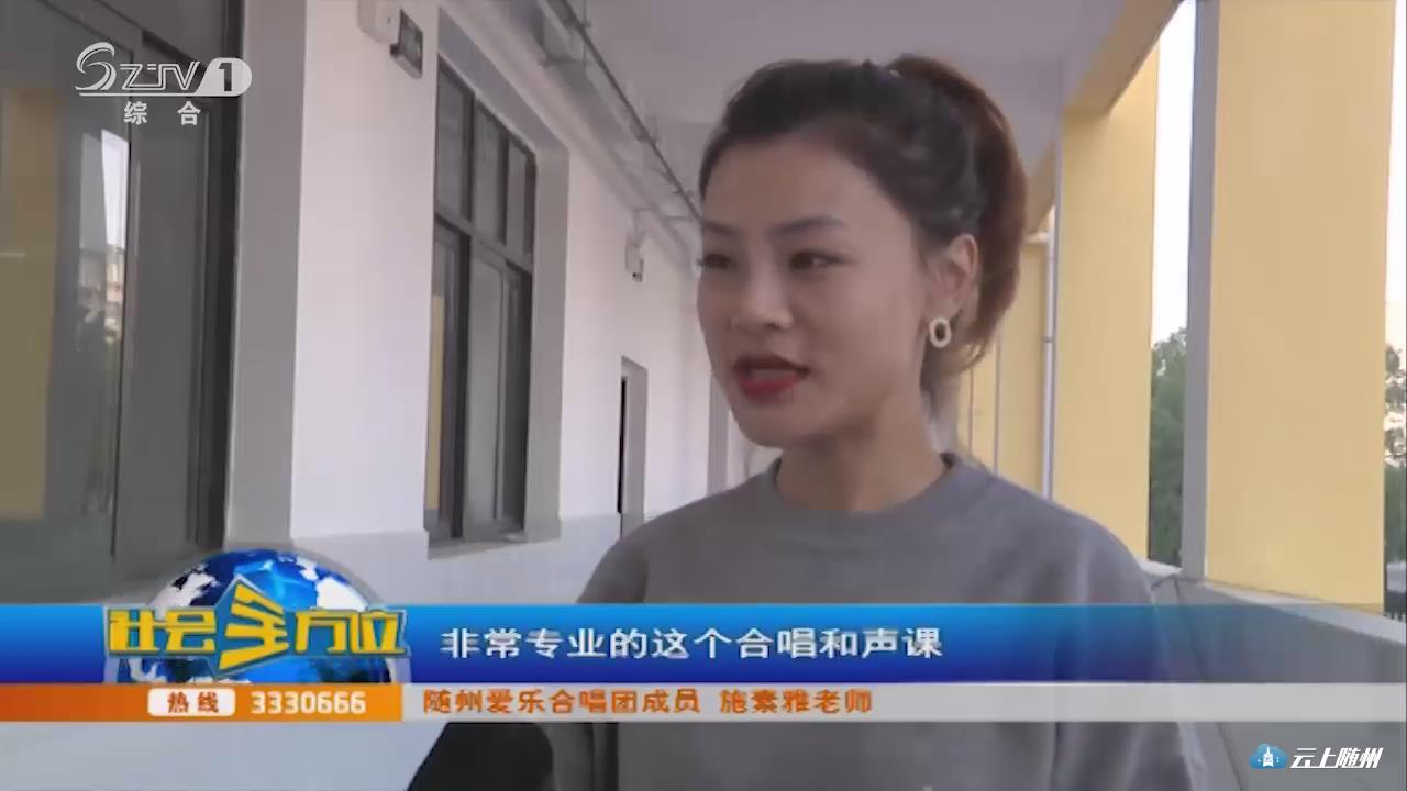 【同期声】随州爱乐合唱团成员杜思春老师:今年下半年我们合唱团得到了武汉音乐学院领导和专家的高度重视和大力支持。这次呢,有武汉音乐学的声乐系主任余慧承教授以及武汉音乐学院东方合唱团的李小莹副教授专程到随州为合唱团义务的进行排练和训练指导。