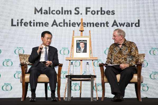 11月29日,十六届福布斯全球CEO会议在印尼雅加达举行,大会颁布马尔科姆•福布斯终身成就奖,万达集团董事长王健林获奖,成为历年唯一获该奖的中国大陆企业家。福布斯传媒集团总裁史蒂夫•福布斯为王健林颁奖,双方围绕“迎接挑战”的大会主题展开了一场精彩对话。