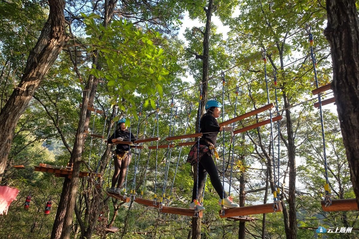 精彩秋日里,动静皆相宜。对于爱好户外的朋友,大洪山的剑口户外公园是一定要去体验下的。这里的轨道攀岩、空中吊桥、丛林飞跃,根据选择适合各个年龄段的游客体验。这些项目穿越剑口陡峭的山岩奇石、飞泻的瀑布、高耸的山岭、斑斓的丛林,集惊险、刺激、娱乐于一体。尤其是在秋日的绚烂里,置身其中,犹如走进画卷,叫人精彩叫绝。