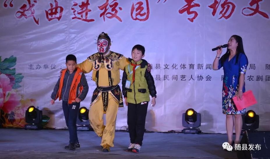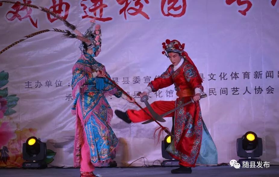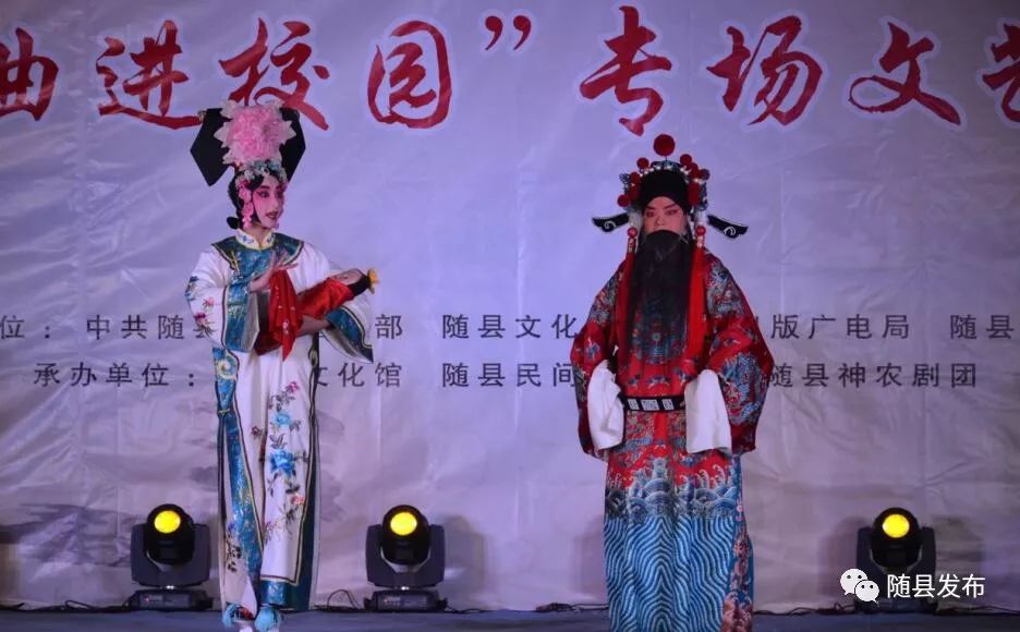 据悉, 2018年随县“戏曲进校园”活动由县委宣传部、文体局、教育局主办,县文化馆、民间艺人协会、神农剧团承办,共同推动中华国粹走进校园、传统文化薪火相传,后期还将在部分农村学校巡回演出。多年来,随县把“戏曲进校园”作为“文化强县”建设重要环节,将戏曲艺术与校园文化建设有机融合,越来越多的学校通过戏曲形式,把文化留下来、唱出来、舞起来。