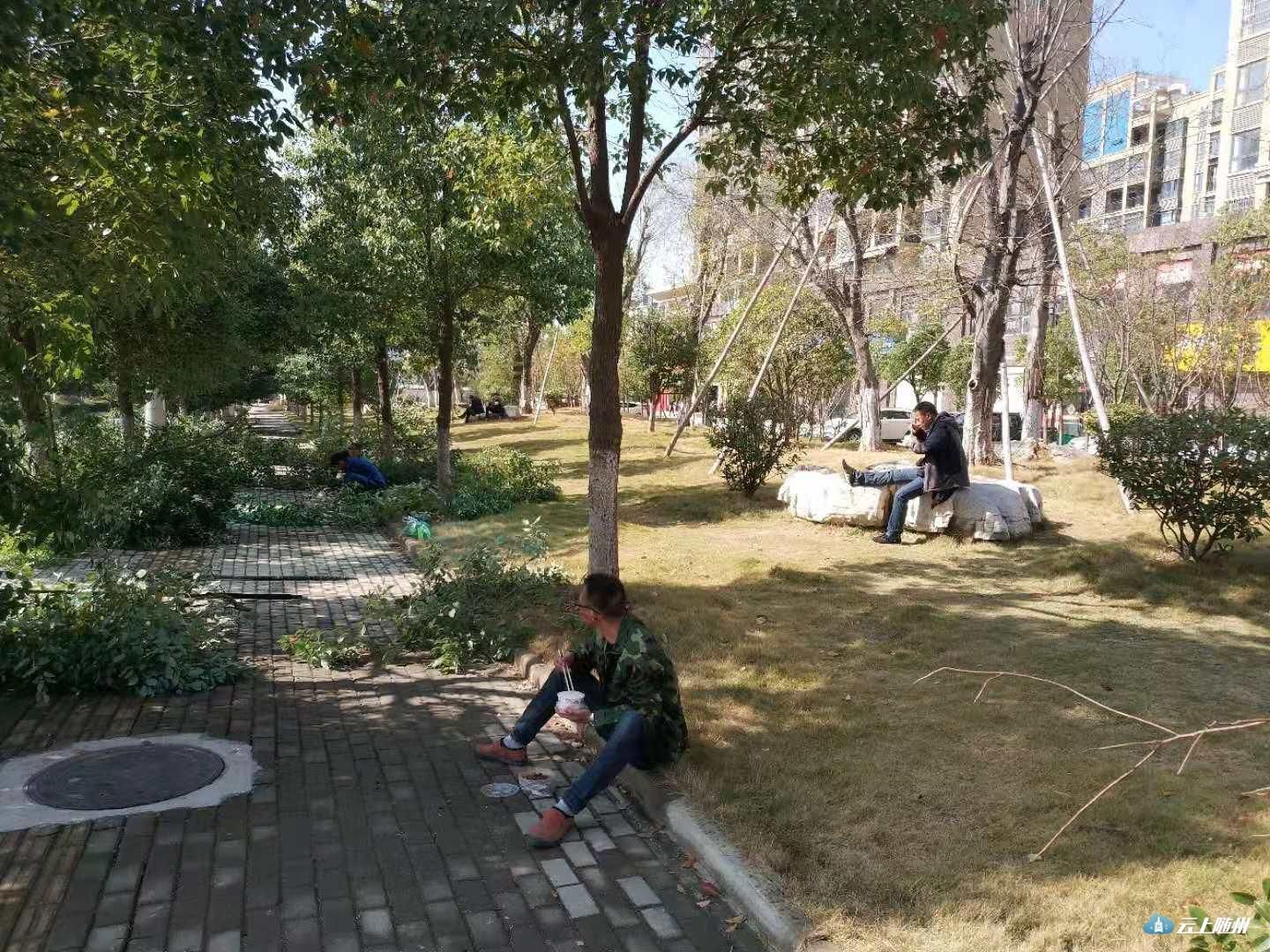 为了确保此次活动达到预期的目标,绿化管理处主要负责人“冲锋在前”,带头修剪、疏枝,其它人员按照临时分配的任务,在各自的“岗位”上各负其责:修剪——分解——装车——清理,大家挥汗如雨,你比我,我赶他,争先恐后,队伍不断向前推进……中午时分,大家就在路边的树荫处用盒饭解决了午餐,稍稍休息后,又开始忙碌起来。
