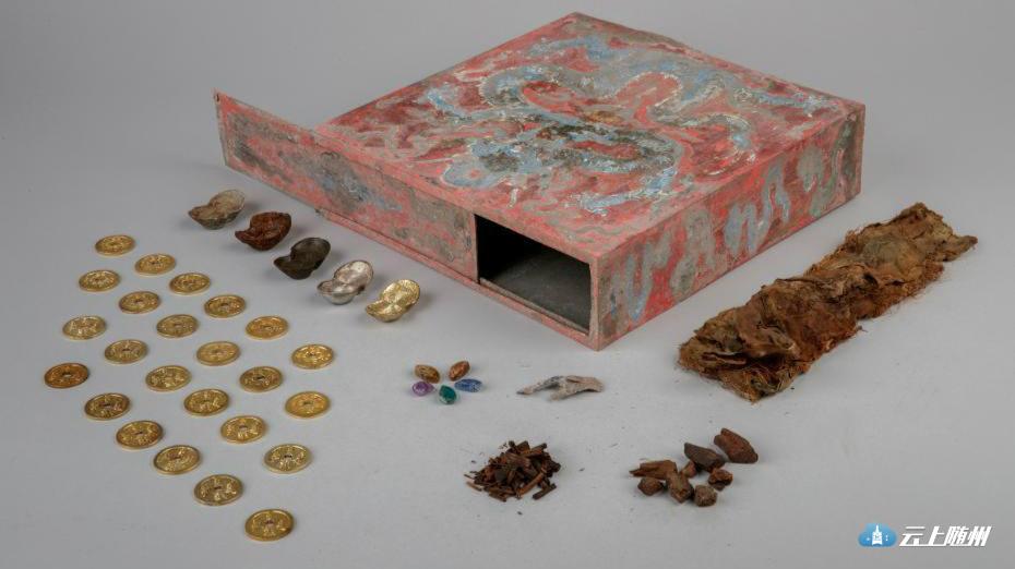 11月16日,在故宫养心殿修缮中发现的首只彩绘宝匣,经过为期2个月的研究、开启、修护工作,于故宫文物医院内展露真容。宝匣内有经卷、金钱、金银铜铁锡五种元宝、五色宝石、五色缎、五色丝线、五香、五药和五谷等。(来源:故宫博物院)