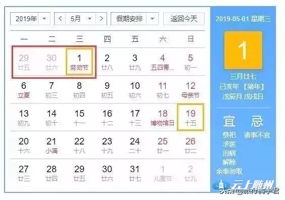 2019年4月29日至5月1日放假,
