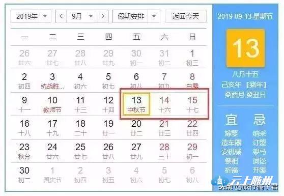 2019年中秋节放假安排: