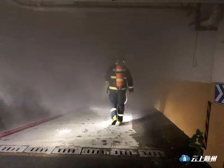 据他介绍,由于地下车库相对密闭,烟气较大,他们只能戴着防烟面罩背着空呼器进入起火点附近进行灭火。