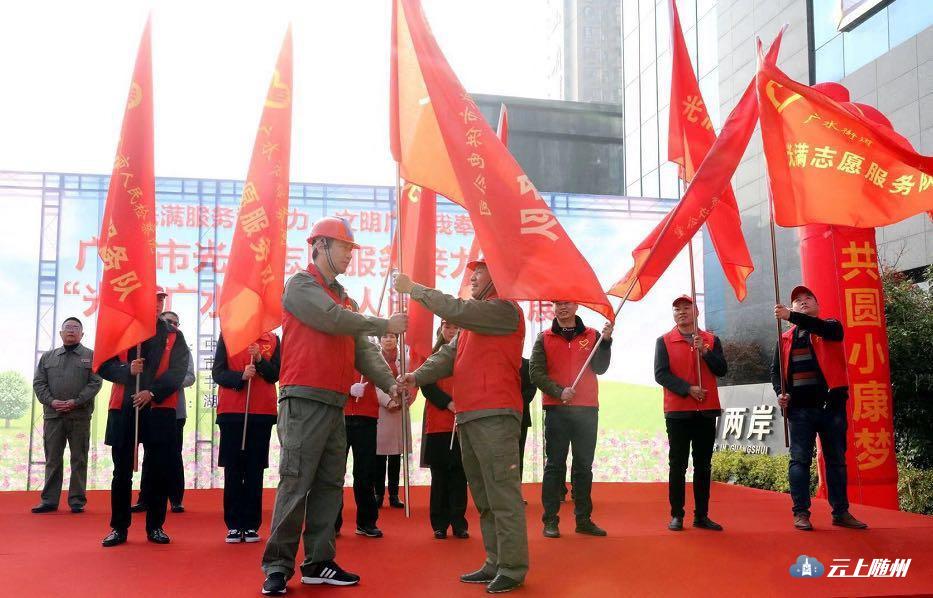 11月20日,在广水市光满志愿服务接力活动现场,“全国劳动模范”、国家电网公司“优秀共产党员”、党的十八大代表、首届“湖北好人”左光满将光满志愿服务队的队旗移交给新队长刘红涛时说:“我即将退休,但志愿服务永不退休。”至此,光满志愿服务队接力完成。
