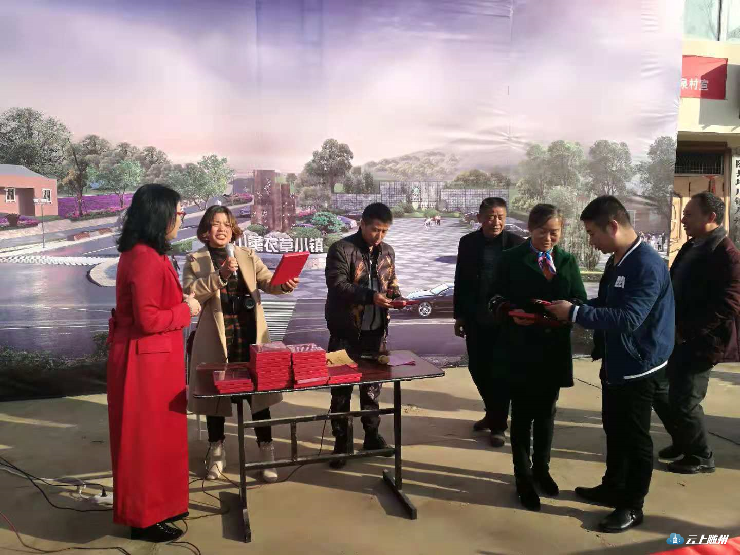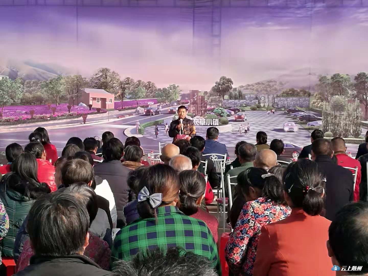 在股权证书发放仪式的现场,项目运营方随县龙湶农业科技有限公司展示了薰衣草小镇项目的规划效果图,负责人刘从高向村民们详细介绍项目的规划愿景和当前的建设情况,重点就村民土地入股的实施办法作了详细说明。