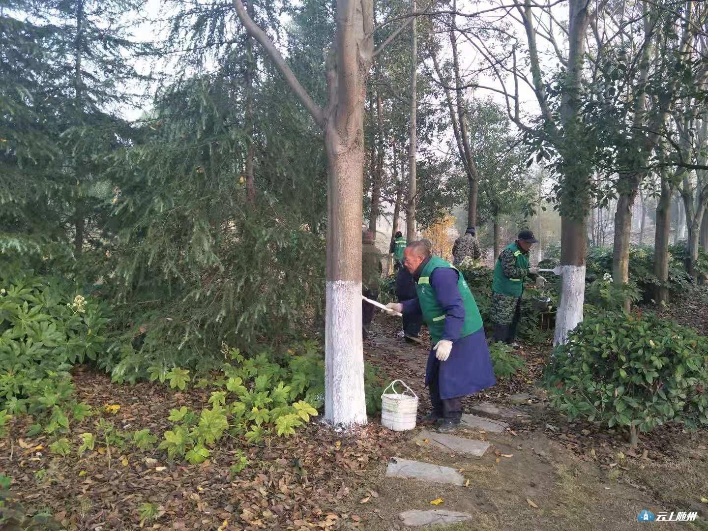 11月20日,白云公园管理处冬季树木刷白工作全面展开,绿化养护人员对炎帝大道辖区内的树木进行逐一刷白,为树木穿上“冬衣”。