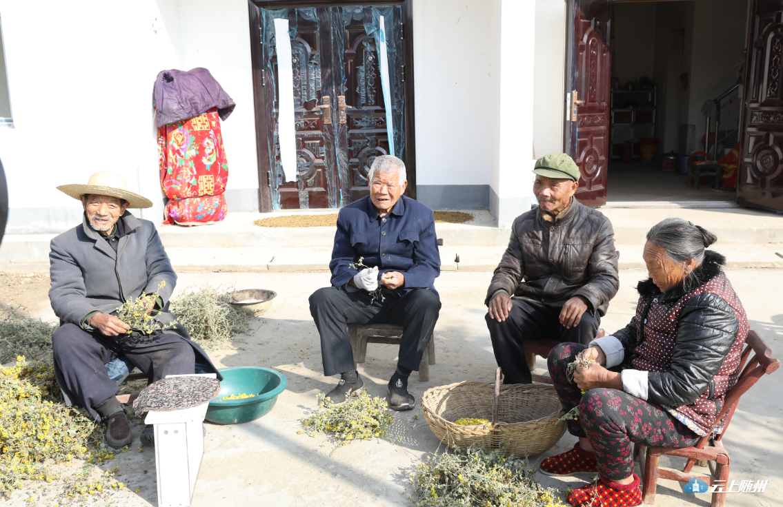 刘老汉和领居们摘菊花