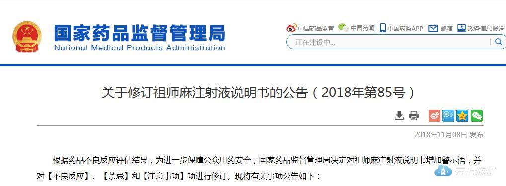 柴胡注射液——5月29日,国家药品监督管理局关于修订柴胡注射液说明书的公告(2018年第26号) ,要求柴胡注射液修订说明书,在禁忌项下须列出“儿童禁用”,并增加警示语“本品不良反应包括过敏性休克”。