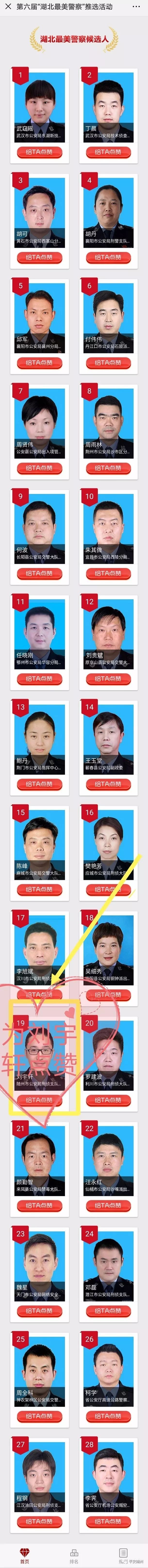 二是关注“湖北公安”微信公众号,点击底部菜单栏“最美警察”进入页面,活动期间每人只能点赞一次,可给多位候选人点赞。