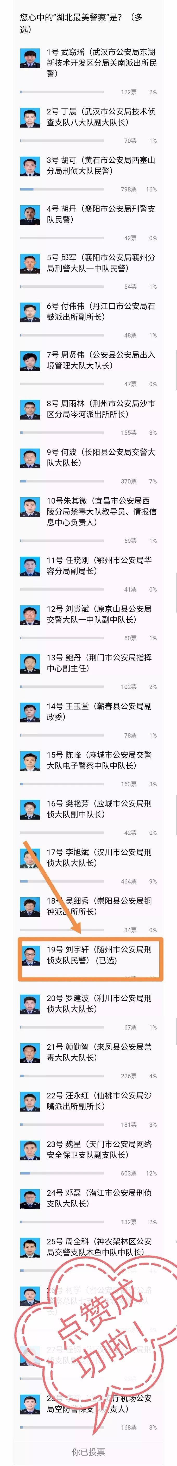 为刘宇轩点赞(“湖北日报”微信每人每天可点赞1次,“湖北公安”微信活动期间每人可点赞1次)