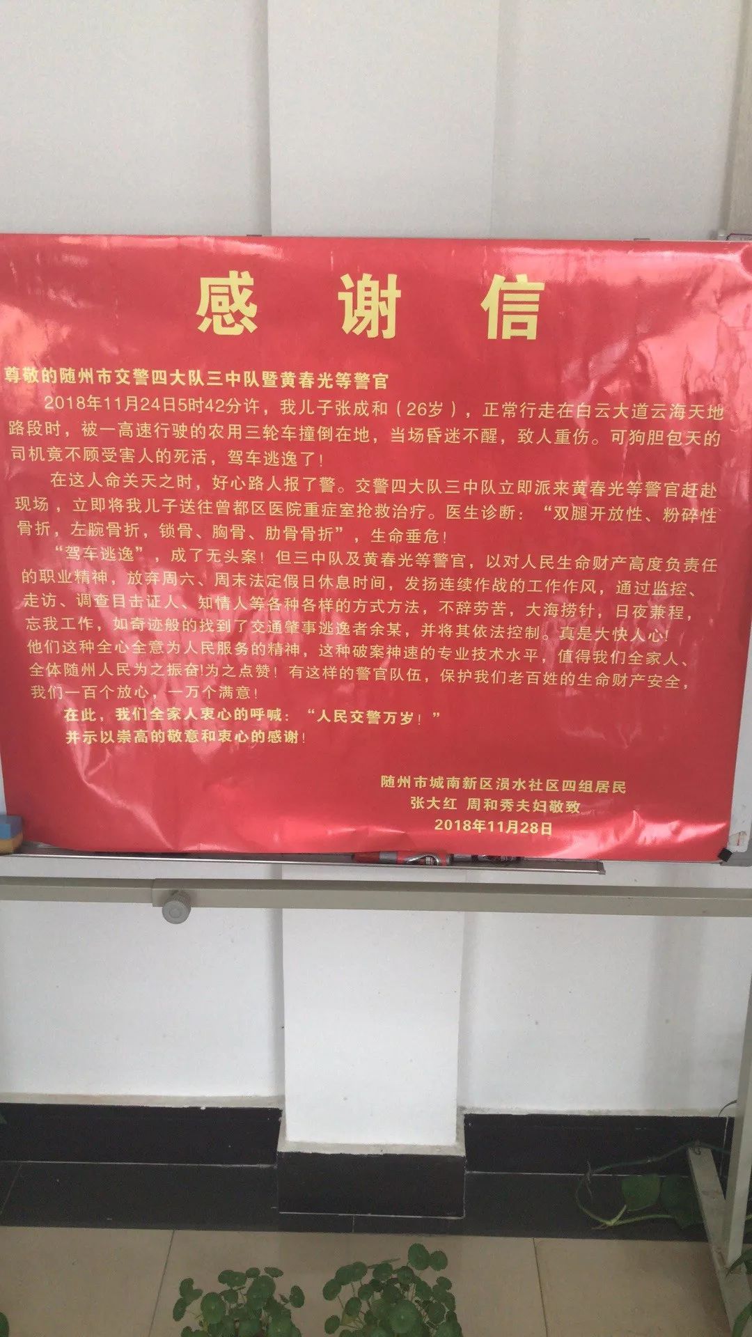 一张很大的大红“喜报”式感谢信