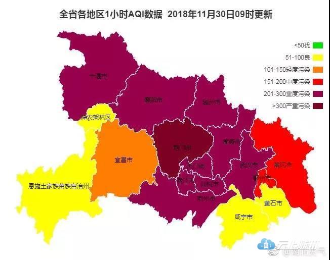 自11月29日12时起,受近地面风速加大、华北污染传输进一步加强影响,湖北省各地环境空气质量出现逐步恶化情况。