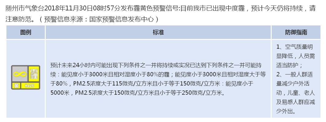 发布霾黄色预警信号