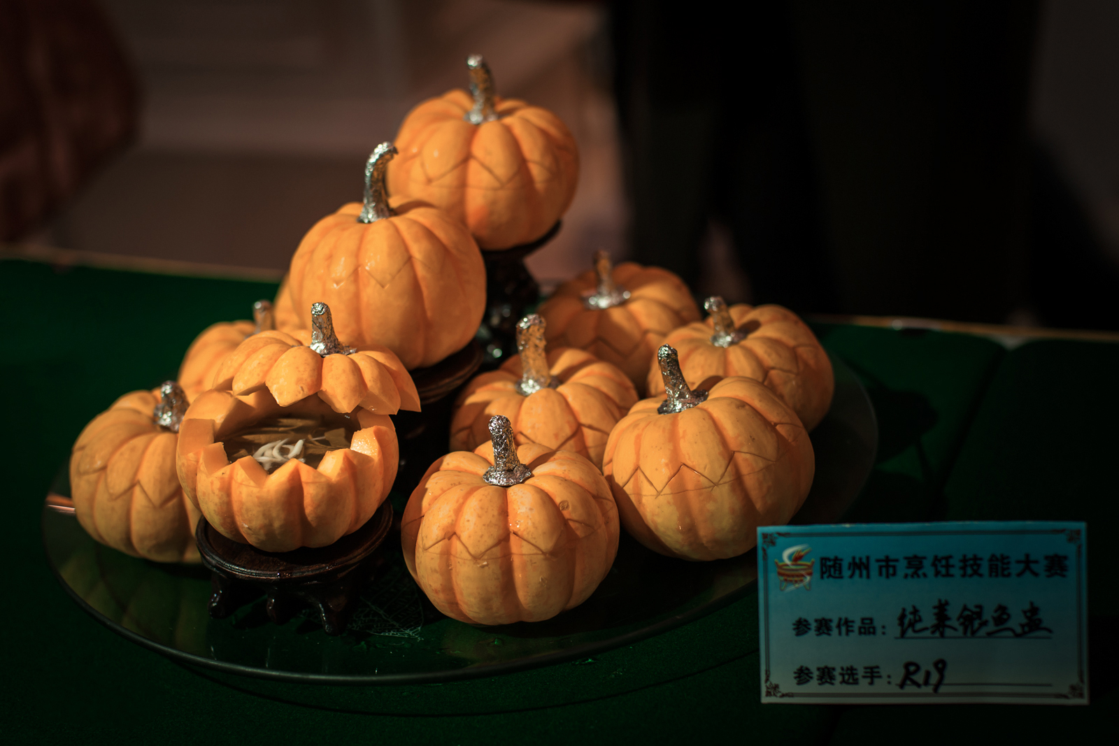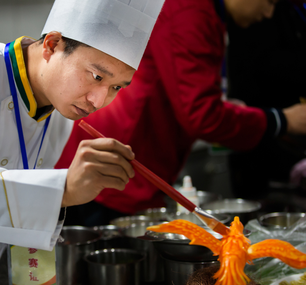 在活动现场,各个参赛选手纷纷使出看家本领,食材在选手精湛的刀工下薄如蝉翼。在展台上,菜品《雪梨炖桃胶》滋补养颜、清香扑鼻;《绿色中国梦》冷拼雕刻画龙点睛、栩栩如生;《鸟语花香》在寒冬里让人感受到勃勃向上的生机和活力。