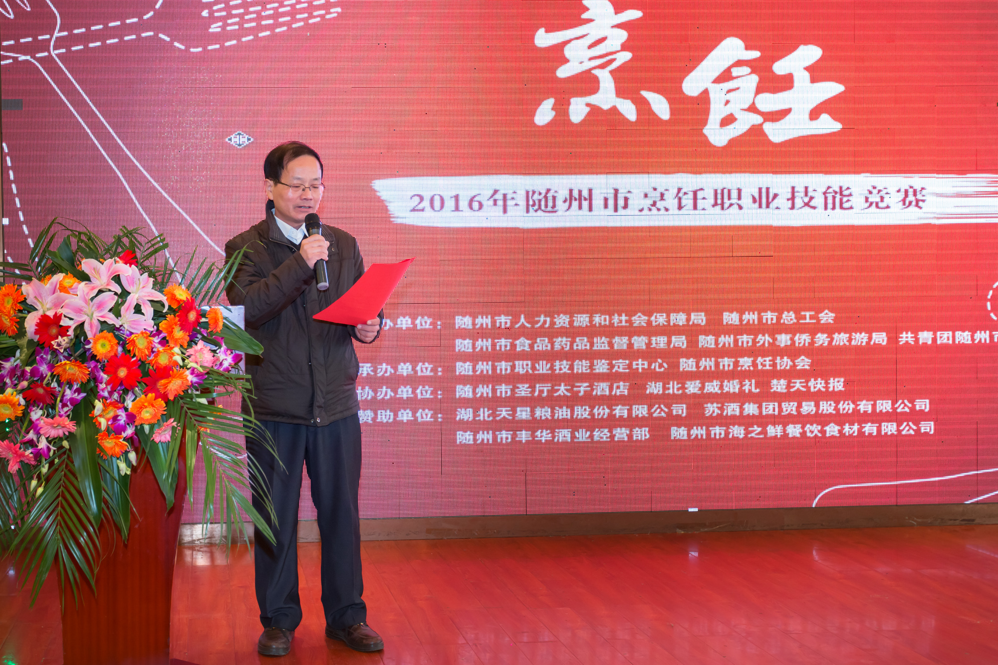 市委组织部副部长,市人社局党组书记、局长刘熙发代表牵头组织单位在开幕式上致辞。他说,此次烹饪职业技能竞赛既是随州饮食服务行业的一次盛会,也是厨界精英的一次技能比拼,同时也是随州餐饮服务水平的一次形象展示。他希望,通过竞赛,发现选拔技能人才,提升职工技能水平,弘扬“工匠精神”,展示随州形象,传承饮食文化。
