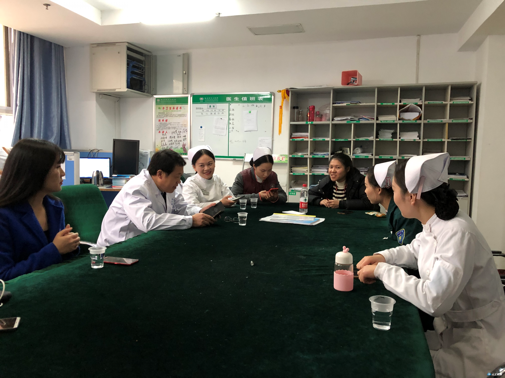 剧组工作人员正在和市中心医院医护人员讨论对接剧中角色的台词