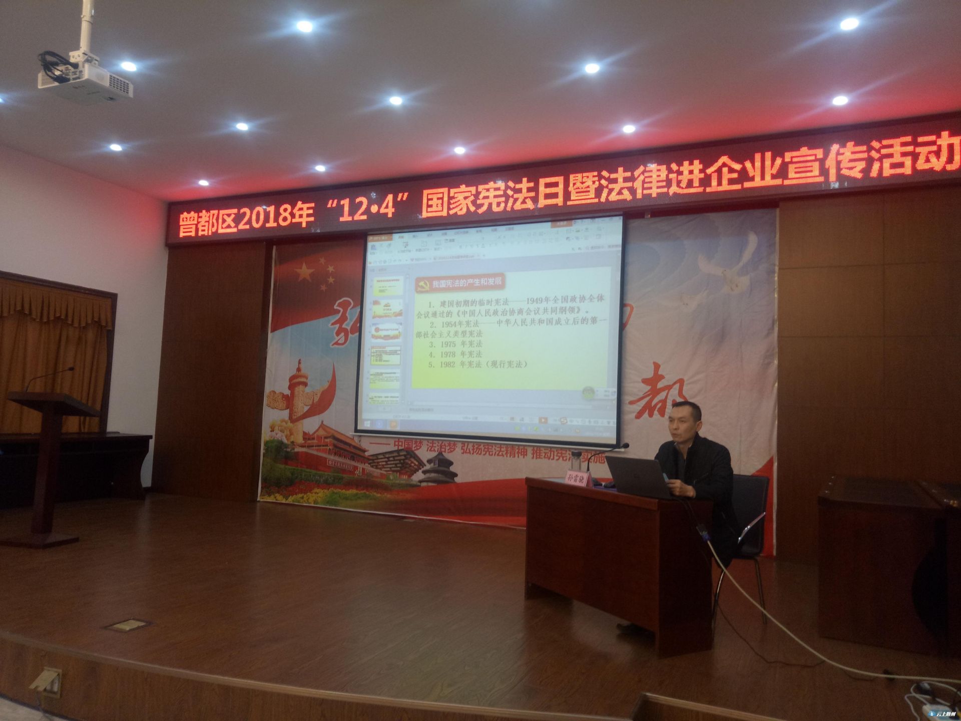 12月4日,曾都区开展2018年“12•4”国家宪法日暨“法律进企业”活动,大力宣传宪法,进一步弘扬宪法精神,维护宪法权威,捍卫宪法尊严,保障宪法实施,助力法治曾都建设。
