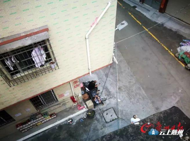 那只大狗,是从一栋两层厂房的天台坠落,天台是这栋厂房的公共空间。房东介绍,根据消防的要求,天台必须直通楼下,因此厂房所有的大门和楼梯都可以直通天台。