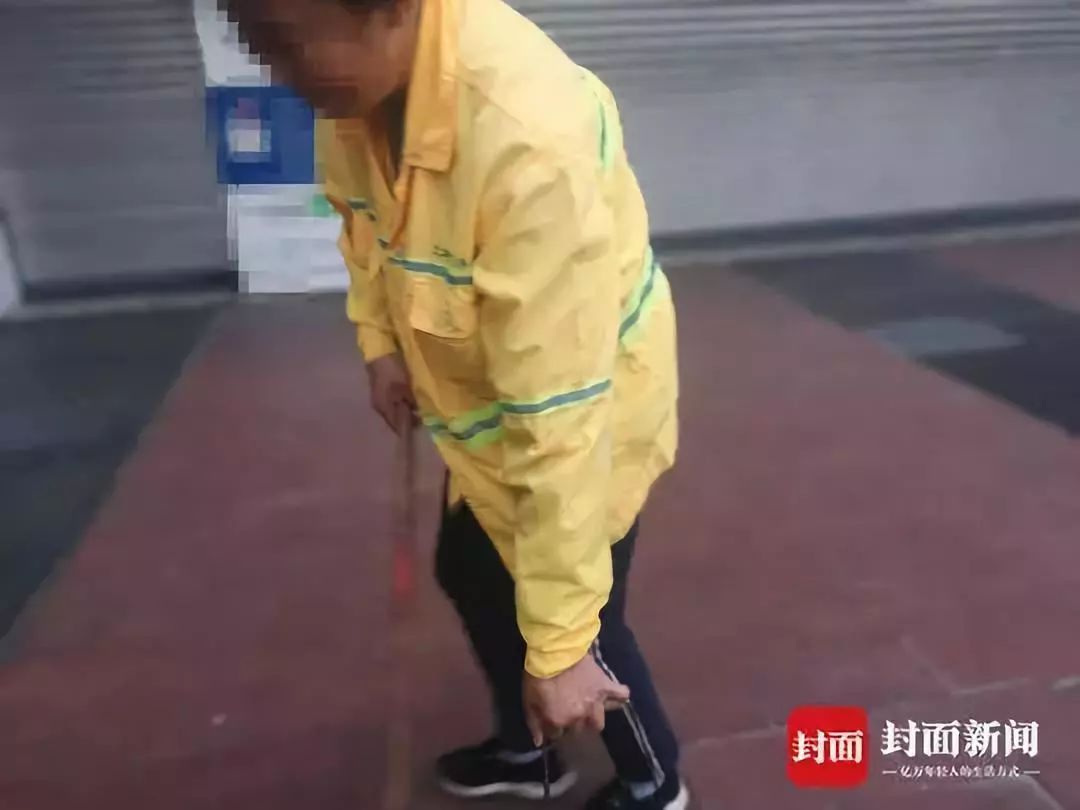 4日下午5时,记者来到大妈打卡照相的地点——武侯区神仙树南路,见到了当时正在清扫落叶的一位女环卫工人。