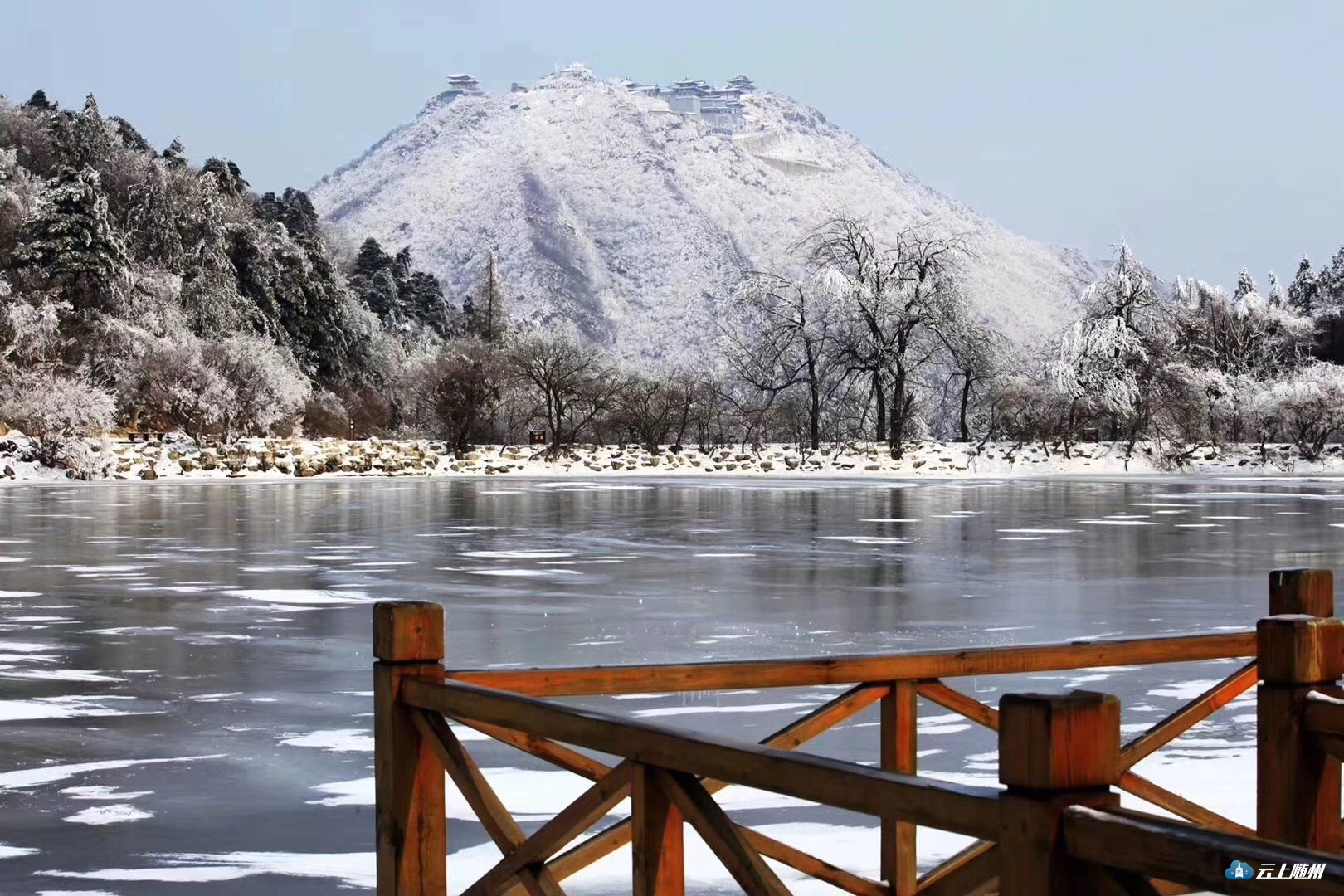大洪山银装素裹,积雪将其装点成为晶莹洁白的冰雪世界,宛若仙境。