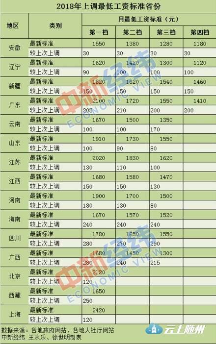 具体来看,今年上调最低工资标准的15省份中,四川、广西、西藏、海南、广东5省份上调超200元。其中,四川和广西上一次调整为2015年,时隔三年,此次将第一档最低工资标准一口气上调280元,上调幅度居15省份之首。
