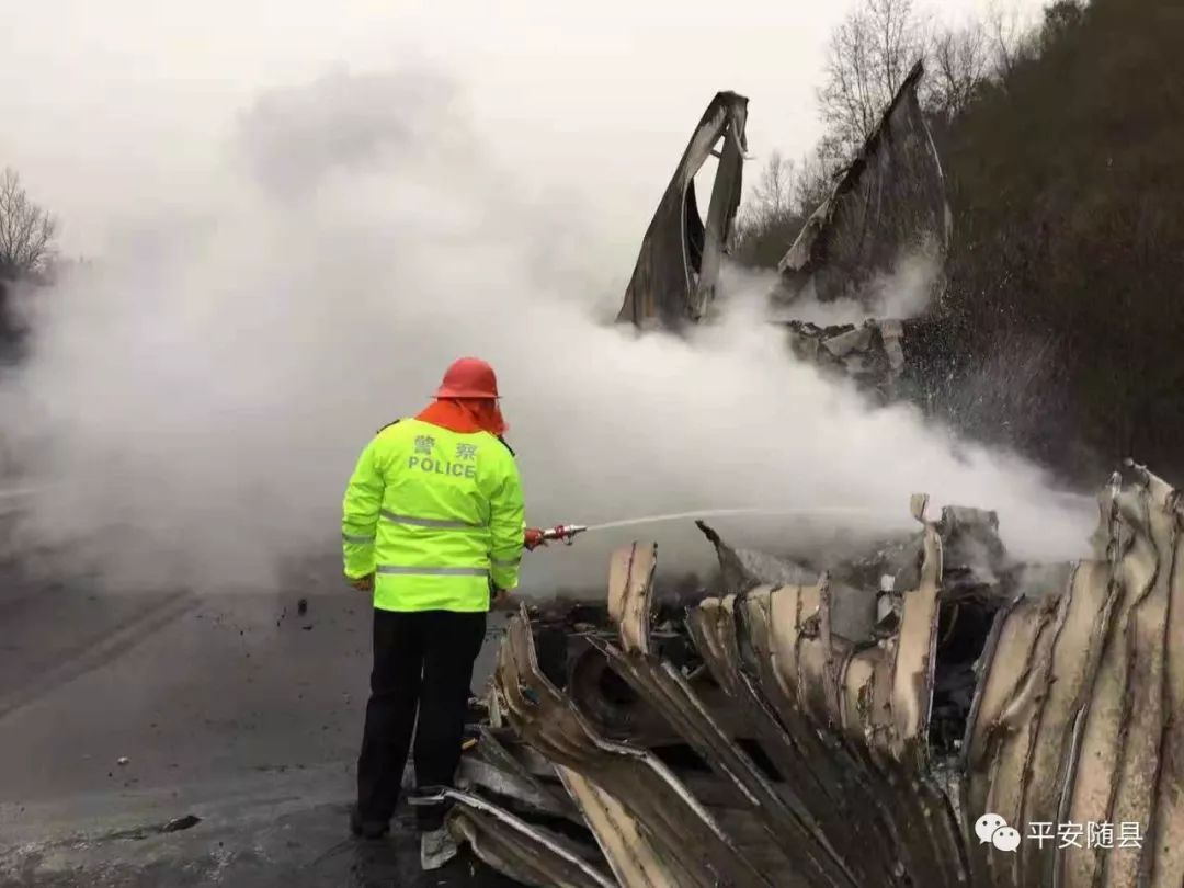 当日7时许,殷店派出所接到报警称:在随岳高速殷店天河口路段入口11公里处一大货车起火。接警后,值班民警带领殷店专职消防队迅速赶到现场。经现场查看,是高速公路上的一辆满载货物的大货车着火。民警迅速做好安全防护措施,维持现场交通秩序并组织开展救援工作。