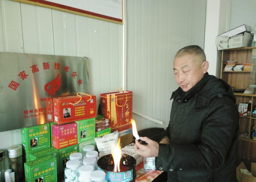 随州退伍老兵席世荣历时十多年研发,全国首创安全环保燃料,获国家发明专利,他自办工厂生产,产品投放市场后供不应求。
