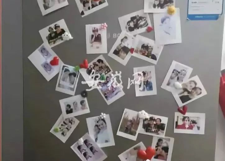 家里的冰箱上贴满一家三口的合影。