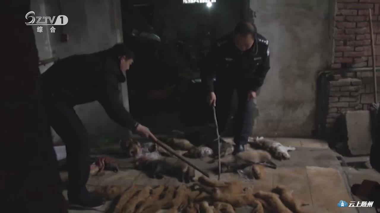 【同期声】森林公安曾都区分局局长 何宗仁:这些都是野生保护动物,这个叫黄鼠狼吃老鼠的,那个叫狗獾,现在都已经死了。
