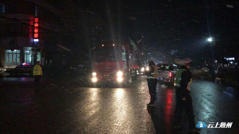 受强冷空气影响,随县迎来今冬首场暴雪天气,随县公安局交警大队全警动员、全力以赴,日夜奋战,强化恶劣天气下的道路管控、巡查、疏导等工作措施,确保道路安全畅通和群众出行安全。