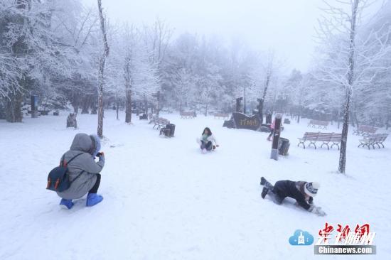 图为游客在雪中嬉戏。刘金文 摄