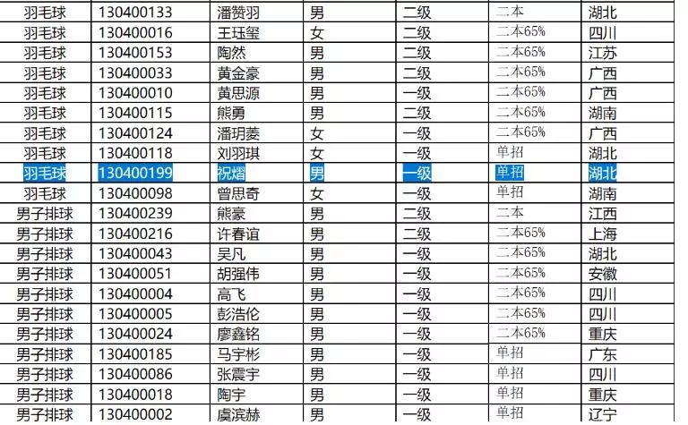 武大2013年高水平运动员预录取学生名单截图