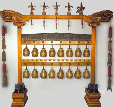 谁说“新年音乐会”只有西方交响乐,故宫也展出了古代最高规格的皇家乐团——中和韶乐。过年时,王公大臣在太和殿向皇帝行礼、乾清宫家人向皇帝行礼,都需要演奏。中和韶乐共有18类乐器,此次展览甄选了最有特色的6类作复原陈列,包括编钟、编磬、建鼓、柷(音祝)、敔(音语)、麾(音辉)等,气势恢宏。
