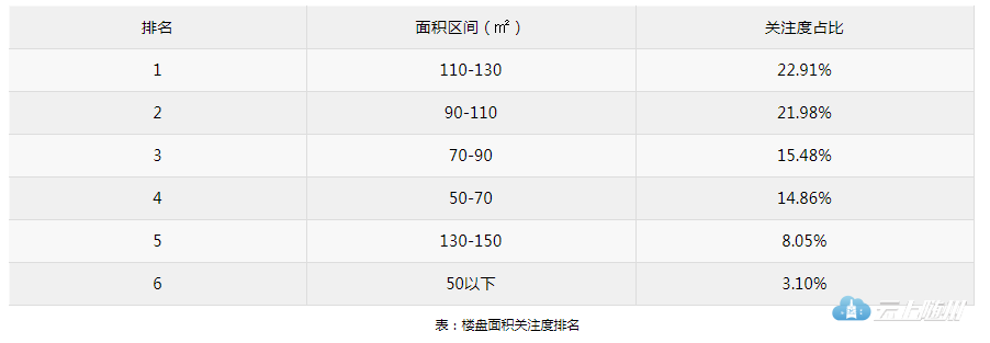 2018年,随州针对新房楼盘,用户最为关注的面积大小的是110-130㎡,关注度占比为22.91%,其次为90-110㎡,关注度占比为21.98%,70-90㎡用户关注度排名第三,关注度占比为15.48%。
