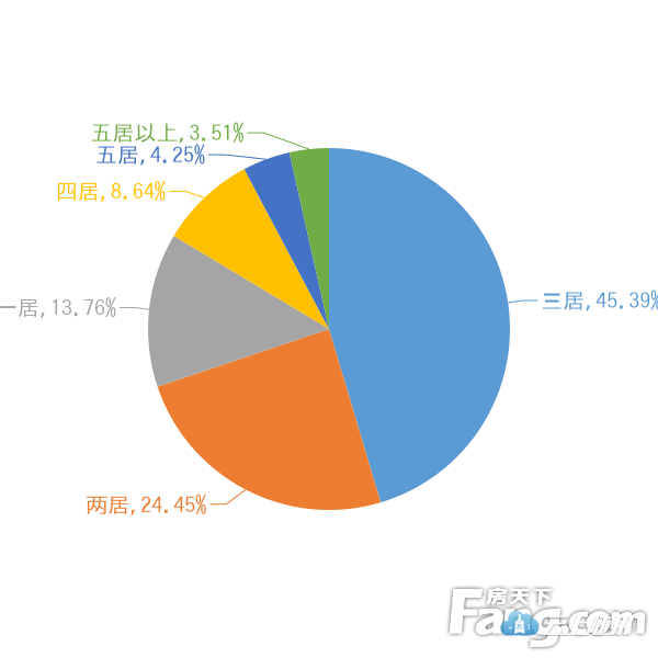2018年,随州针对新房,用户最关注的居室为三居,关注度占比为45.39%,其次为两居,关注度占比为24.45%,一居用户关注度排名第三,关注度占比为13.76%。