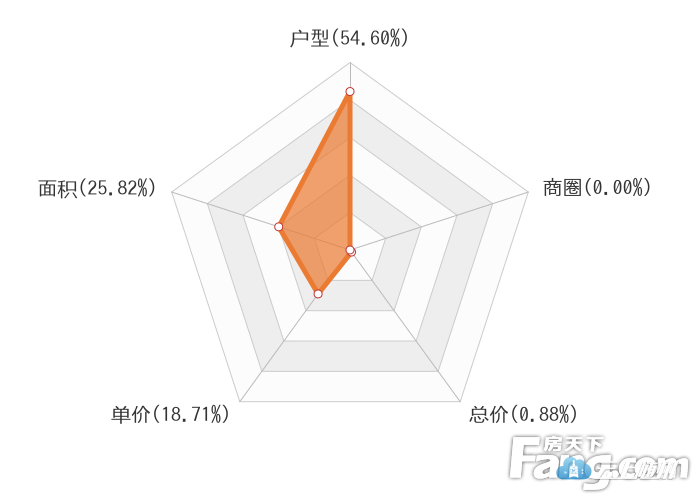 针对楼盘的属性,随州用户2018年主要关注的是楼盘的户型、楼盘的面积和楼盘的单价,关注度占比分别为54.60%、25.82%和18.71%。