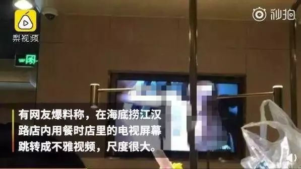 5日下午3点左右,有顾客进入武汉市江汉区某商场内海底捞店铺用餐时,店里的电视屏幕突然跳转成不雅视频,尺度较大。视频播放过程中,很多店内用餐顾客都感到很尴尬,随后电视被关掉。