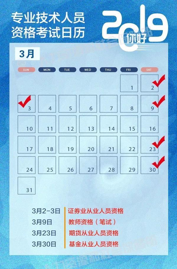 2019第7天!今年你有哪些小目标?教师资格、会计、播音员主持人…小编准备了一份《2019年考试日历》,涉及各行各业,送给希望升职加薪的你!