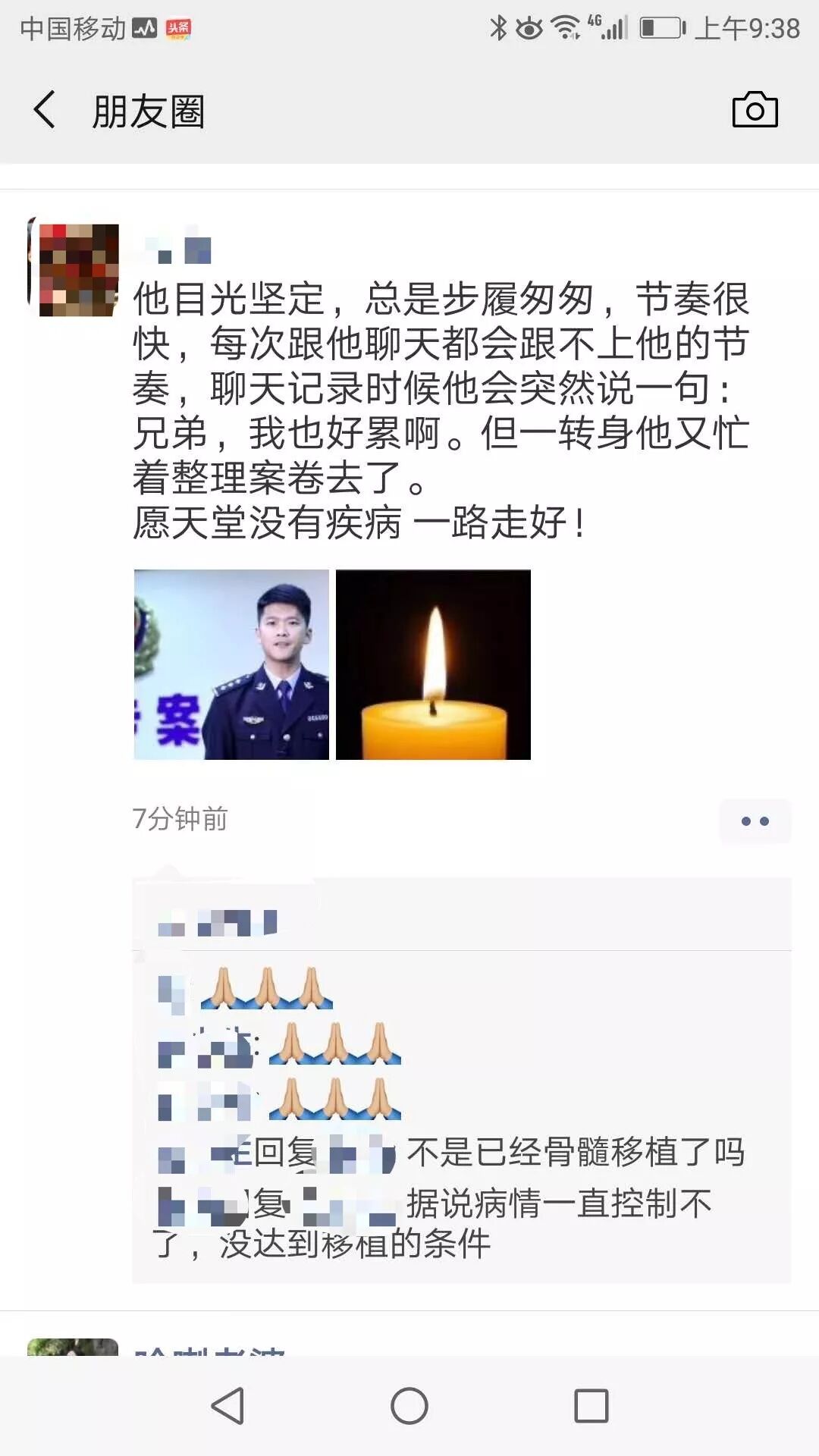听到消息后,很多他的同事、战友和朋友都在朋友圈怀念他: